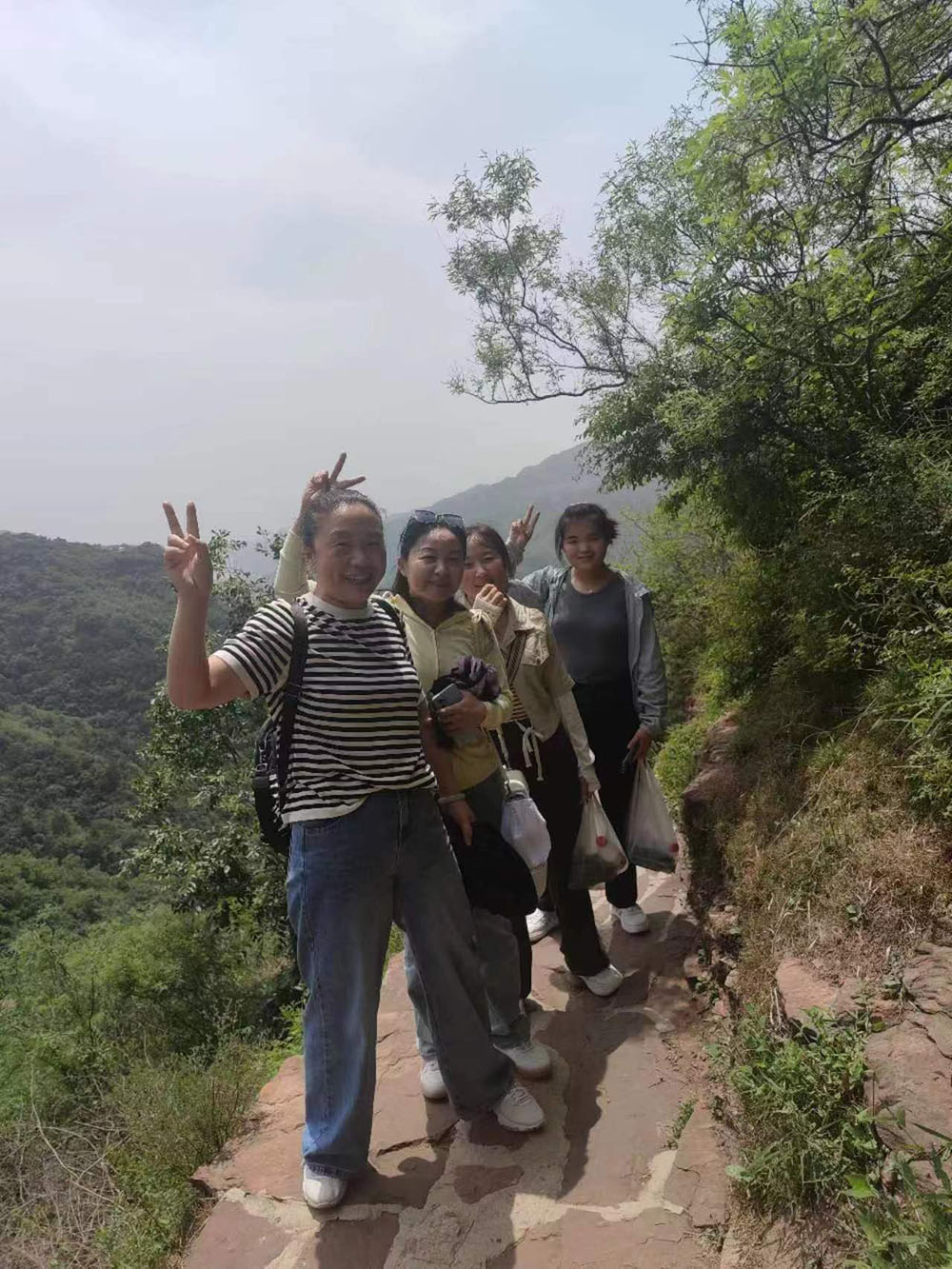 到達景區(qū)后,大家乘坐景區(qū)內(nèi)小火車來到趙匡胤千里送京娘的青銅雕像前合影留念。撫摸著青銅雕像,品味著這個凄美的愛情故事,感慨萬千。隨后,大家乘上游船,欣賞京娘湖碧波蕩漾的旖旎風光,感受著一線天峰林絕壁的壯美風景。到達碼頭后,大家拾級而上開始登山。隊伍分為前鋒、后營、中軍,團隊前后呼應,協(xié)調(diào)行動。上山的路雖然很陡峭曲折,有的路段甚至沒有臺階,但大家相互鼓勵,相互加油,堅持著向上攀登,向上攀登。中午,在山里人家簡單用餐后小憩一會兒,午后繼續(xù)向山頂發(fā)起沖鋒。每當大家疲憊至極時,就停下來休息一下,吹著清爽怡人的山風,回眸走過的山路,又是一番別樣的風景,一身的疲憊和勞累一掃而光。短暫休息后,大家繼續(xù)向上攀登,有的員工走不動了,落在了后面,大家就扶一把,拉一把,幫助他們跟上隊伍。在大家的共同努力下,終于成功登上了宋祖峰的頂峰,整個團隊沒有一個人掉隊。特別是車間女工表現(xiàn)的非常頑強,體現(xiàn)了不怕苦不怕累、積極向上的精神風貌。團隊的一些老員工,還有員工家屬,不管是老人還是孩子,都表現(xiàn)的很好,堅持到了最后,站上了峰頂。